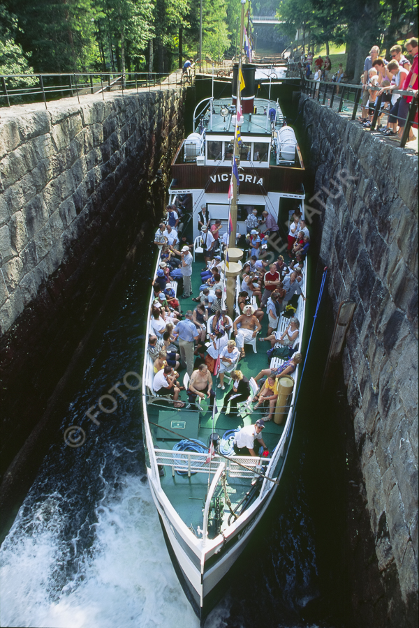 Ausflugsdampfer, Bauwerk, Dampfer, Fahrzeug, Gewässer, Kanal, Landschaft, Norwegen, Person, Schiff, Schleuse, Telemark, Telemarkkanal, Verkehrsmittel, Verkehrsweg, Vrangfoss, Wasserfahrzeug,