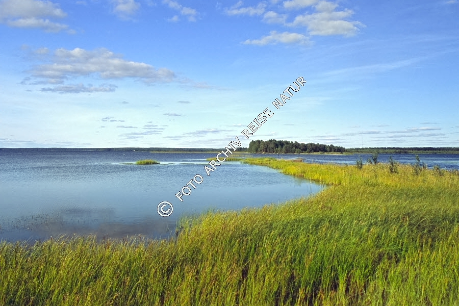 Finnland, Flora, Gras, Insel Manamansalo, Kainuu, Oulu, Schilfrohr , Phragmites australis, Schäfchenwolke, Cirrocumulus, Süßgras, Wetter, Klima, Wolke,
