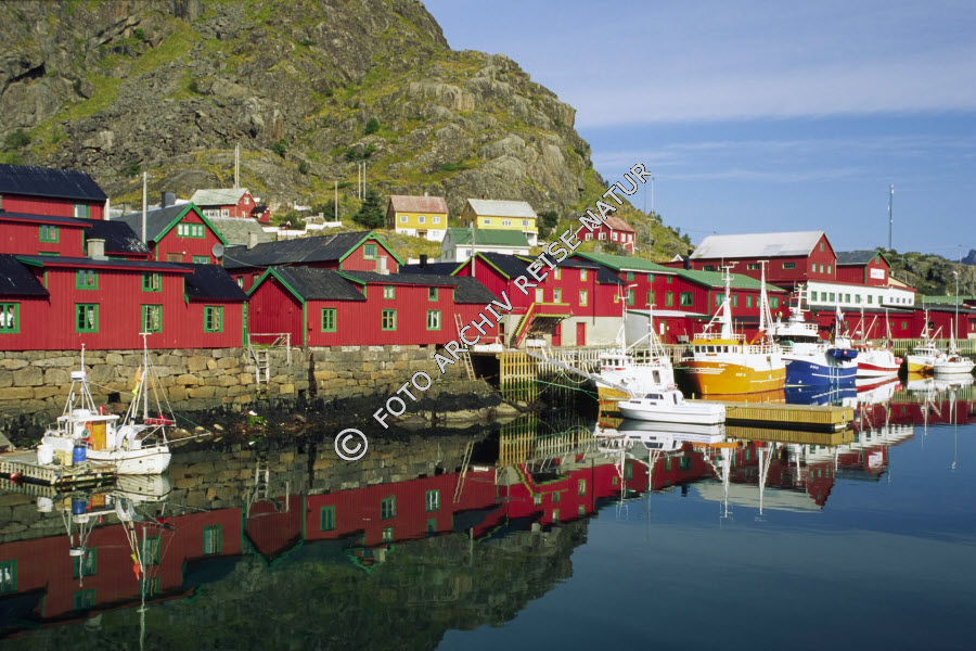 Bauwerk, Fischereihafen, Fischerhütte, Fjord, Gebäude, Gewässer, Hafen, Hütte, Landschaft, Lofoten, Nordland, Norwegen, Rorbu, Stamsund, Vestfjorden, Vestvågøy,