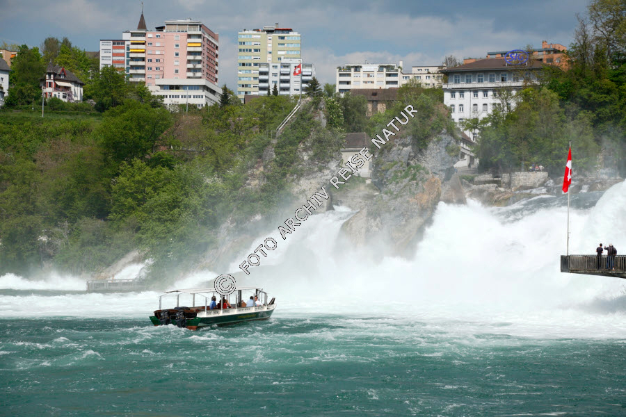 Tourboot stromaufw?rts zum Rheinfall bei Schaffhausen
