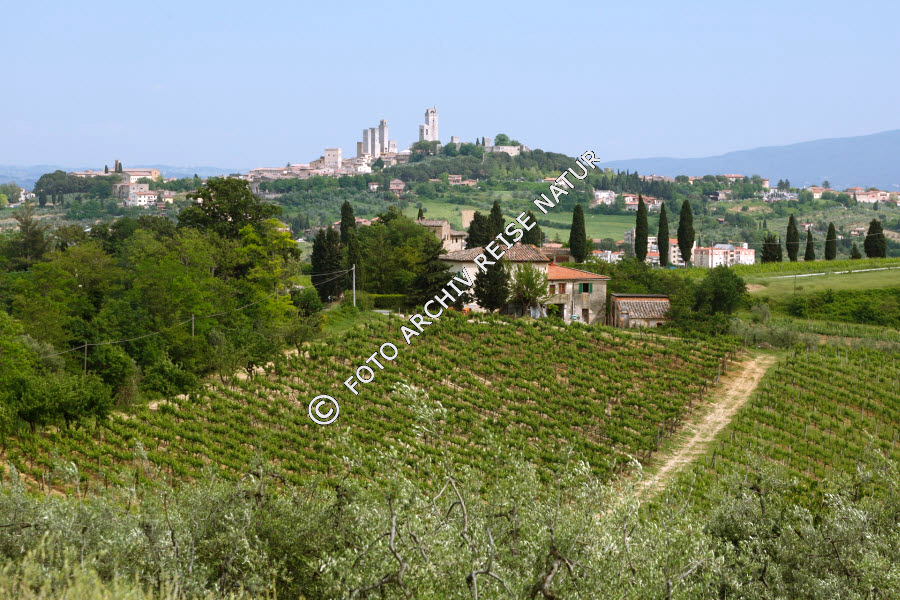 Keywords: Baum, Flora, Italien, Kulturlandschaft, San Gimignano, Stadt, Stadtansicht, Toskana, Weinberg, Zypresse, Cupressus, Zypressengewächs,