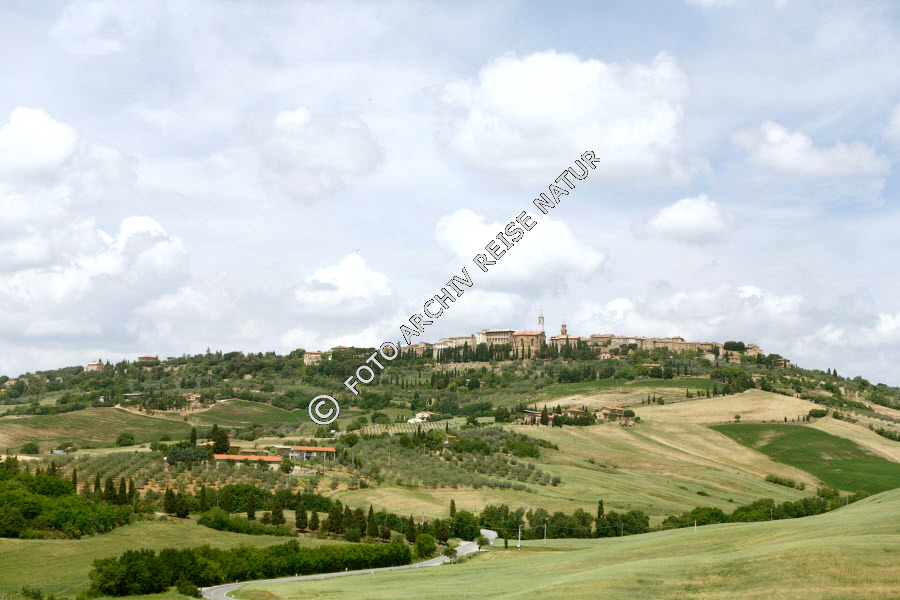 Hügel, Hügelland, Italien, Kulturlandschaft, Landschaft, Pienza, Stadt, Stadtansicht, Toskana,