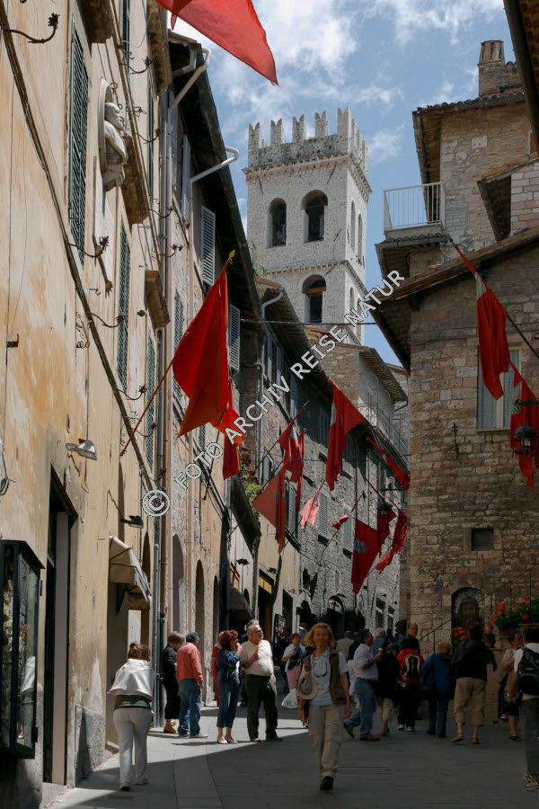 Altstadt, Assisi, Bauwerk, Gasse, Italien, Kulturlandschaft, Stadt, Straße, Turm, Umbrien, Verkehrsweg,