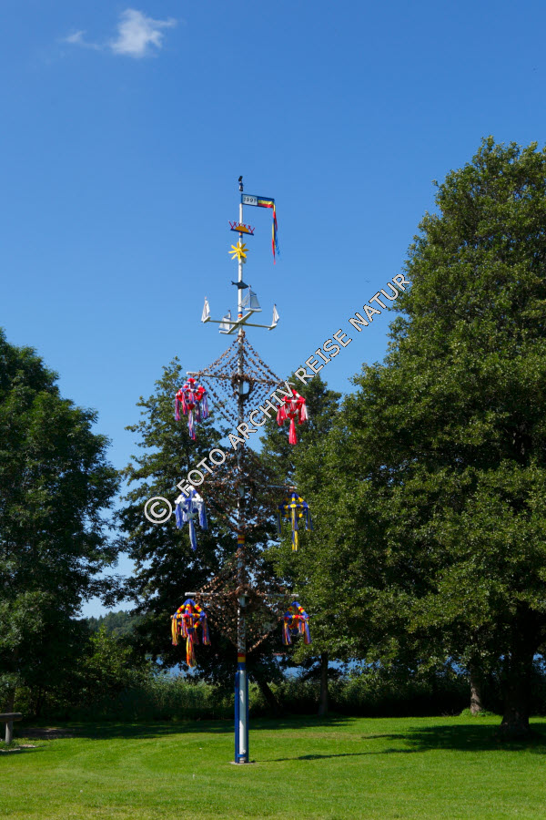 Keywords: Baum, Bovik, Brauchtum, Tradition, Farbe, Finnland, Flora, Hammarland, Kultur, Kulturlandschaft, Mittsommerstange, Wiese, grün, Åland,