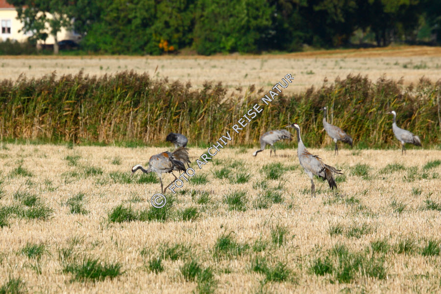 Kraniche auf abgeerntetem Feld