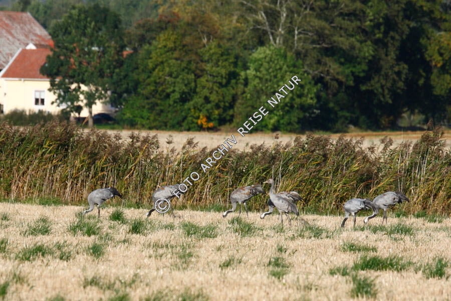 Fauna, Feld, Fäholmen, Hornborgasjön, Kranich, Grus grus, Kranichvogel, Gruiformes, Kulturlandschaft, Naturschutzgebiet, Ort, Schweden, Stoppelfeld, Vogel, Västra Götlands län,