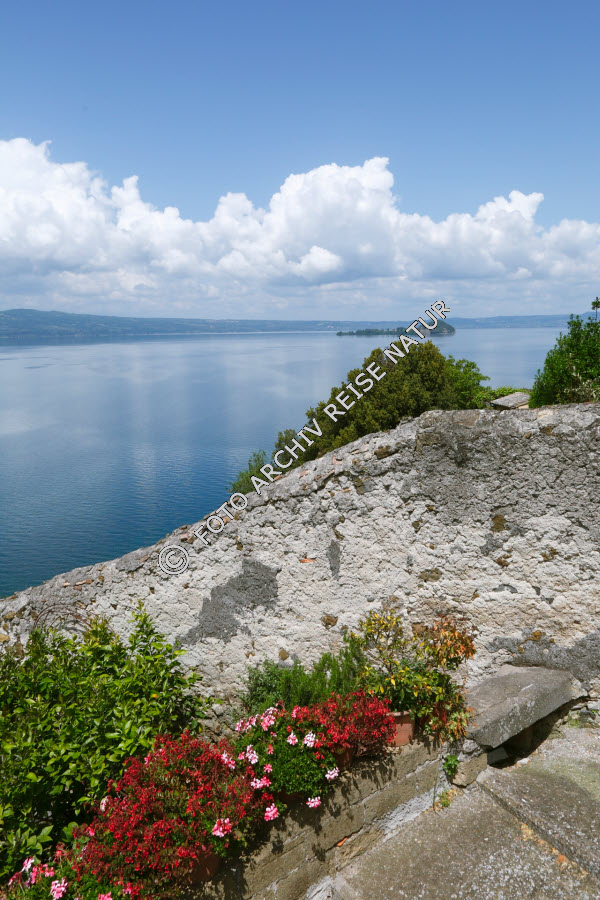 Bisentina, Blume, Bolsena, Capodimonte, Felsen, Flora, Gewässer, Himmel, Insel, Italien, Lago di Bolsena, Landschaft, Latium, Material, See, Stein, Strauch, Wetter, Klima, Wolke,