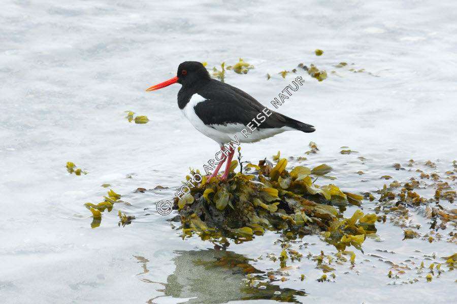Keywords: Algen, Austernfischer, Haematopus ostralegus, Blasentang, Fucus vesiculosus, Fauna, Fjord, Flora, Gewässer, Grunnførfjorden, Landschaft, Seetang, Vogel, Watvogel,