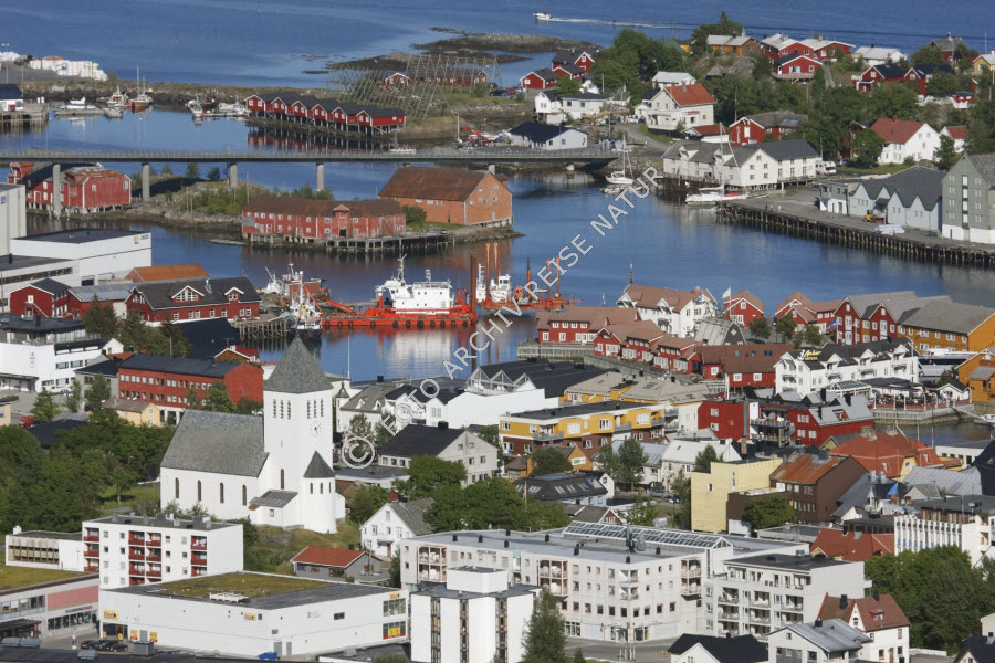 Keywords: Austvågøya, Bauwerk, Berg, Brücke, Fjord, Gebäude, Gegenstand, Gestell, Gewässer, Hafen, Haus, Holzhaus, Kirche, Kulturlandschaft, Landschaft, Lofoten, Nordland, Norwegen, Sakralbau, Schiffswerft, Stadt, Stadtansicht, Steinhaus, Steinkirche, Stockfisch-Trockengestell, Svolvær, Tjeldbergtinden, Verkehrsweg, Vestfjorden,