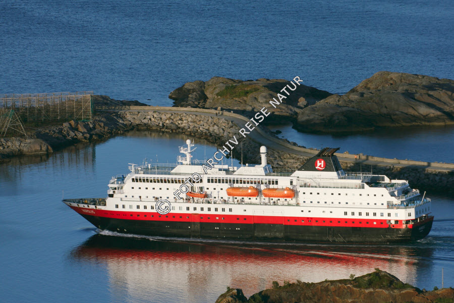 Hurtigrutenschiff bei der Einfahrt Hafen Svolvær