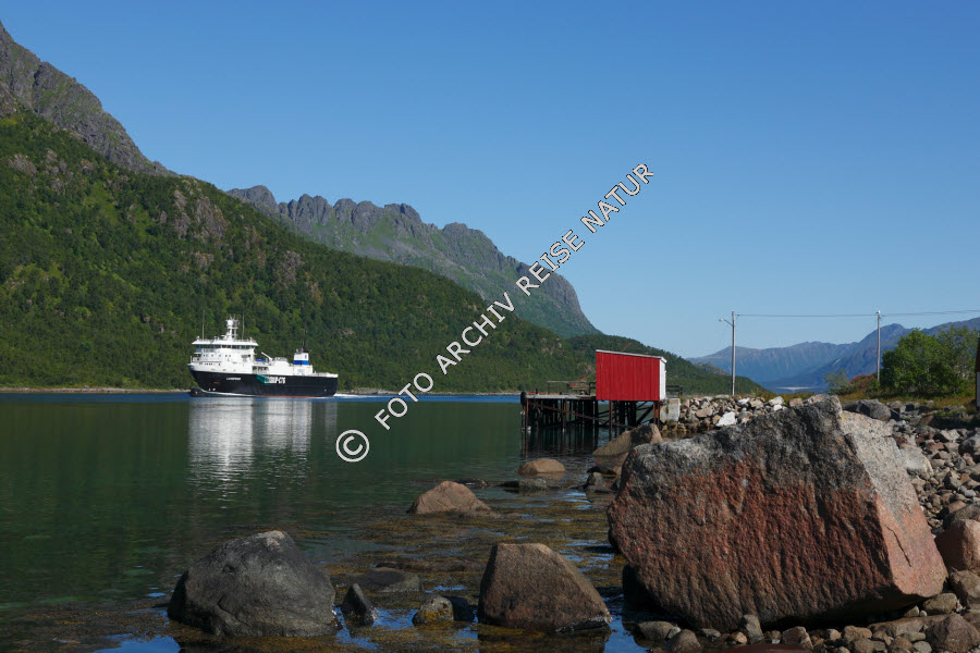 Küstenmotorschiff im Raftsund bei Raften