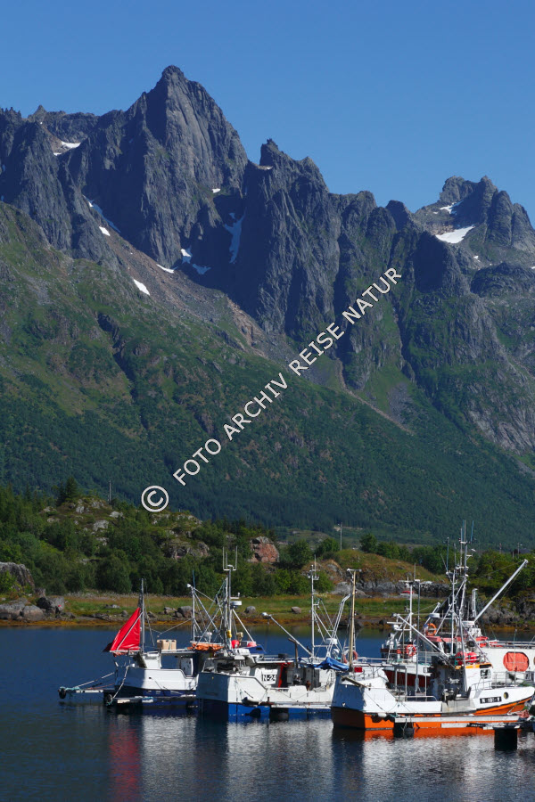 Austnesfjorden, Austvågøya, Bergkette, Bergmassiv, Bergwald, Felsen, Felswand, Fjord, Gebirge, Gewässer, Landschaft, Lofoten, Material, Nordland, Norwegen, Sildpollen, Stein, Wald,
