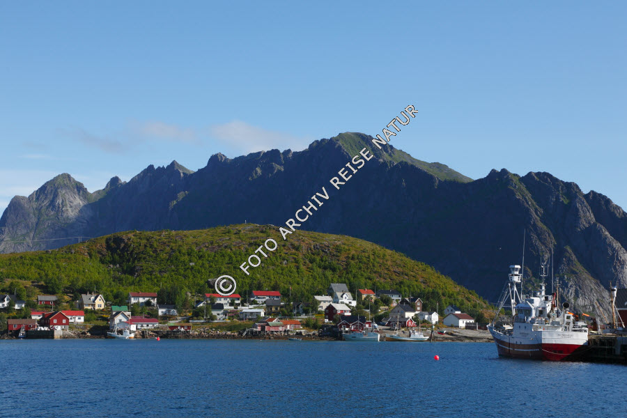 Keywords: Berg, Dorf, Fischerdorf, Fjord, Gewässer, Kulturlandschaft, Landschaft, Lofoten, Moskenesøy, Nordland, Norwegen, Reine, Reinefjorden,