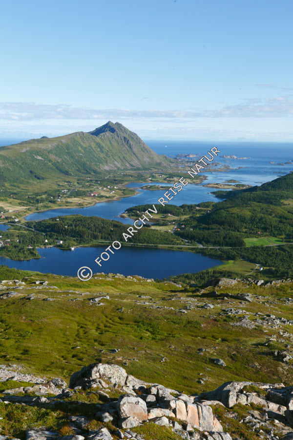 Keywords: Berg, Bodden, Digermulen, Felsen, Fjell, Fjord, Gewässer, Hinnøya, Insel, Kulturlandschaft, Landschaft, Lofoten, Material, Nordland, Norwegen, Schäre, Stein, Steinheia, Storfjorden, Süd-Hinnøy, Vestfjorden, Vestvågøy, Wald, Wiese,