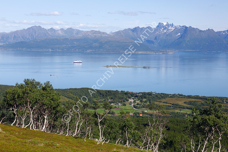 Keywords: Baum, Berg, Bergkette, Birke, Betula, Birkengewächs, Fjell, Fjellbirke, Betula pubescens, Fjord, Flora, Gebirge, Gewässer, Hadselfjorden, Hadseløya, Landschaft, Nordland, Norwegen, Vesterålen, Ørnheia,