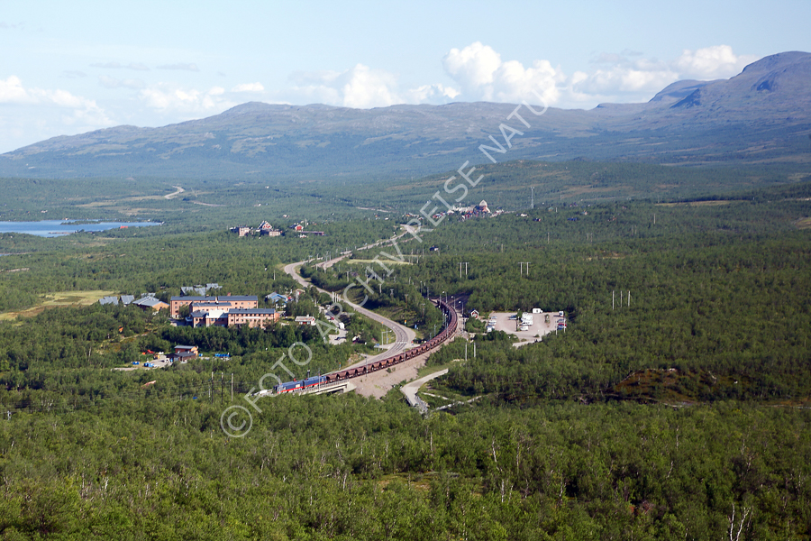 Abisko, Berg, Eisenbahn, Erzbahn, Fahrzeug, Fluss, Gebirge, Gewässer, Hotel, Landschaft, Lappland, Nationalpark, Norrbottens Län, Ort, Schienenfahrzeug, Schweden, See, Verkehrsmittel, Wald, Wetter, Klima, Wolke,