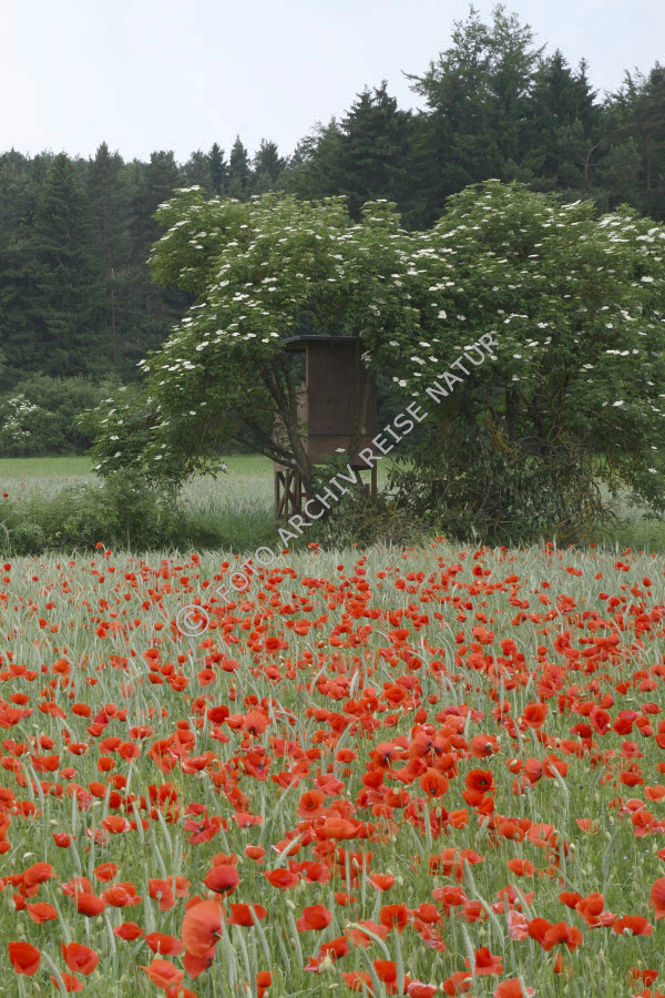 Bayern, Deutschland, Eschenbach, Flora, Klatschmohn, Papaver rhoeas, Kulturlandschaft, Landschaft, Mohngewächs, Wald, Wiese,