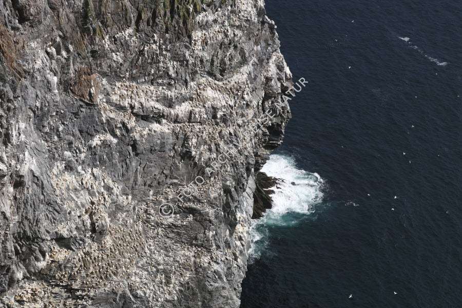 Keywords: Basstölpel, Morus bassanus, Fauna, Felsen, Felsküste, Felswand, Gewässer, Insel, Insel Runde, Küste, Landschaft, Material, Meer, Møre og Romsdal, Nordmeer, Norwegen, Steilküste, Stein, Tölpel, Vogel, Vogelfelsen,
