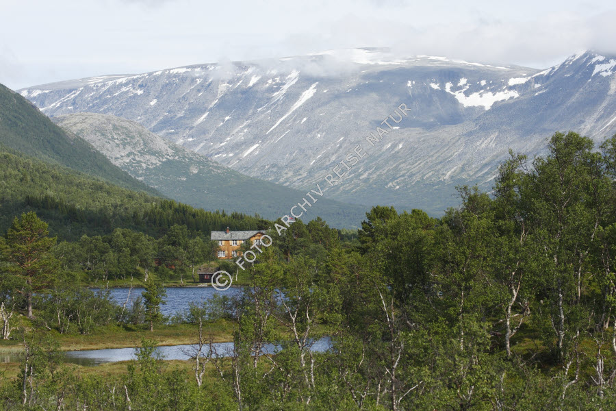 Keywords: Bauwerk, Berg, Bergsee, Gebäude, Gewässer, Gipfel, Gjøra, Haus, Herberge, Holzhaus, Landschaft, Møre og Romsdal, Norwegen, Ort, See, Vangshaugen, Wanderheim, Wiese, Wiesenhang,