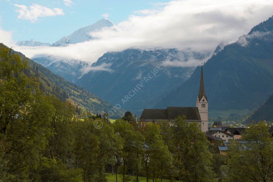 Baum, Bauwerk, Berg, Bergwald, Flora, Gebirge, Gebäude, Hohe Tauern, Hoher Sonnenblick, Kirche, Kirchenschiff, Kirchturm, Landschaft, Nationalpark, Ort, Rauris, Sakralbau, Salzburger Land, Turm, Wald, Österreich,