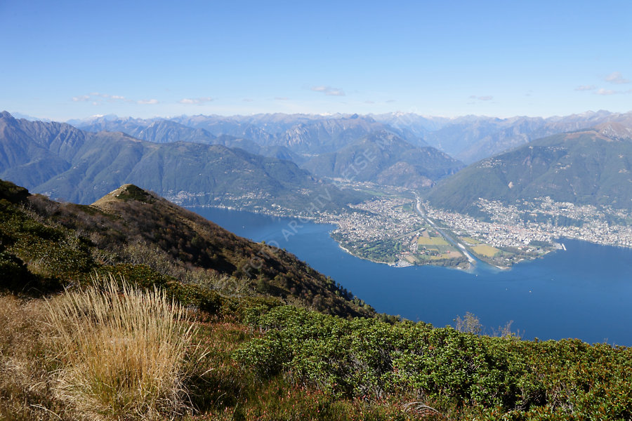 Keywords: Berg, Bergkette, Flora, Fluss, Flussdelta, Gambarogno, Gebirge, Gewässer, Gras, Grasbüschel, Lago Maggiore, Landschaft, Maggia, See, Tal,