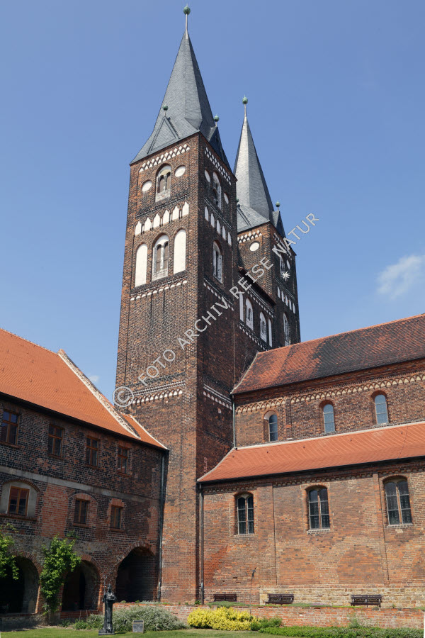 Abtei, Kloster, Backstein, Backsteinkirche, Baustil, Bauwerk, Deutschland, Gebäude, Jerichow, Kirche, Kirchturm, Klosterkirche, Kreuzgang, Material, Romanik, Sachsen-Anhalt, Sakralbau, Stein, Steinkirche, Turm,