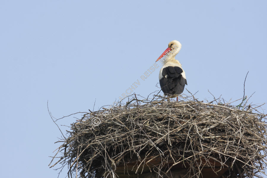 Deutschland, Fauna, Nest, Rühstäd, Sachsen-Anhalt, Storchennest, Störche, Tierbau, Vogel, Weißstorch, Ciconia ciconia,