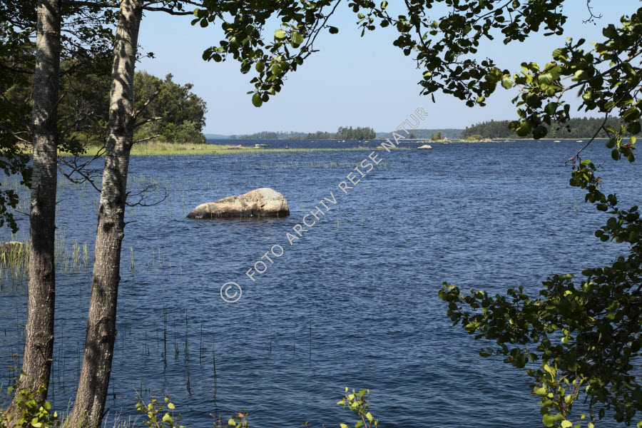 Keywords: Baum, Flachwasserzone, Flora, Gewässer, Gras, Landschaft, Schilfrohr , Phragmites australis, See, Süßgras, Åsnen,