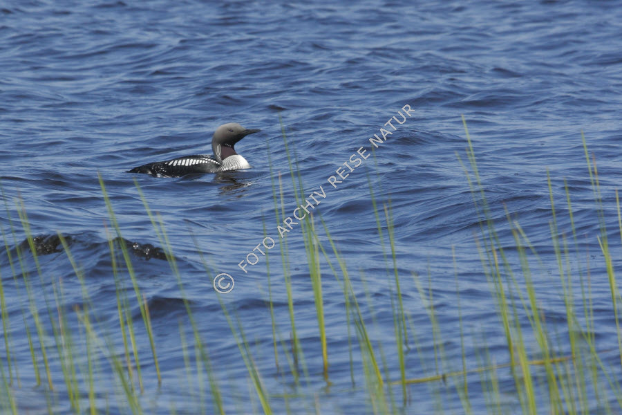 Keywords: Farbe, Fauna, Flora, Gewässer, Gras, Landschaft, Prachttaucher, Gavia arctica, Schilfrohr , Phragmites australis, See, Seetaucher, Süßgras, Vogel, blau, Åsnen,