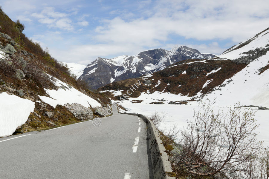 Bauwerk, Berg, Berghang, Bergrücken, Gaularfjellet, Gebirgsstraße, Landschaft, Norwegen, Sogn og Fjordane, Straße, Verkehrsweg,