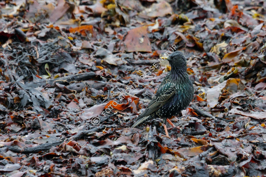 Keywords: Algen, Fauna, Flora, Goksøyr, Insel, Insel Runde, Landschaft, Møre og Romsdal, Norwegen, Seetang, Star, Sturnus vulgaris, Strand, Vogel,