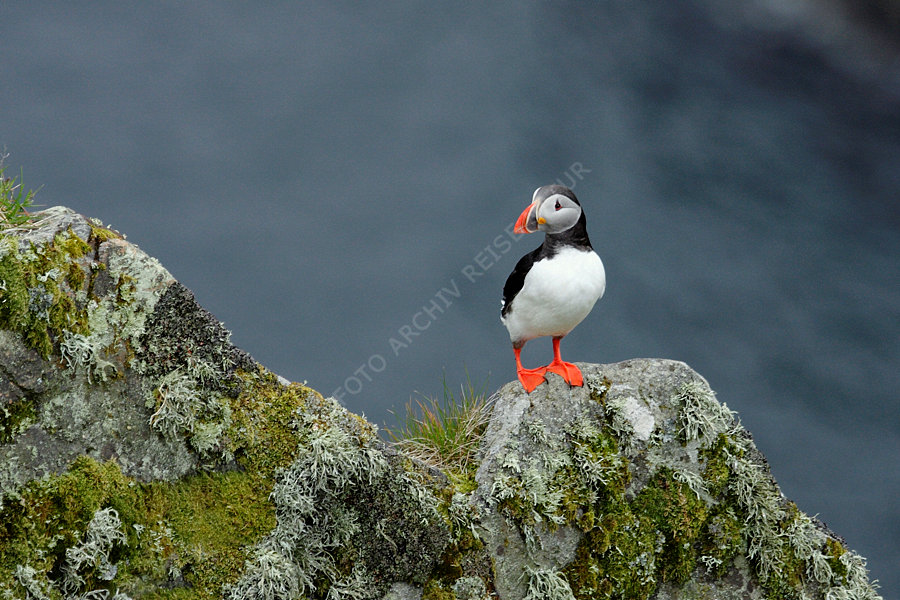 Alkenvögel, Fauna, Felsbrocken, Felsen, Goksøyr, Insel, Insel Runde, Landschaft, Material, Møre og Romsdal, Norwegen, Papageitaucher, Fratercula arctica, Stein, Vogel, Vogelinsel,
