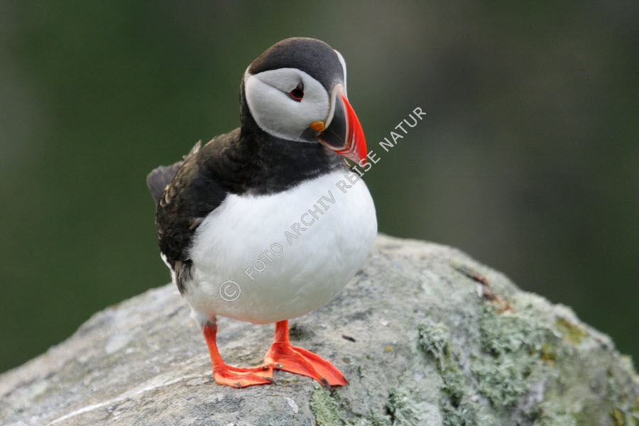 Alkenvögel, Fauna, Felsblock, Felsbrocken, Felsen, Goksøyr, Insel, Insel Runde, Landschaft, Material, Møre og Romsdal, Norwegen, Papageitaucher, Fratercula arctica, Stein, Vogel,