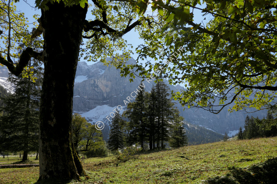 Keywords: Ahorngewächse, Alm, Baum, Bergahorn, Acer pseudoplatanus, Bergwald, Engalm, Fichte, Picea, Flora, Gebirge, Großer Ahornboden, Hinterriss, Hochtal, Karwendel, Kieferngewächs, Kulturlandschaft, Landschaft, Tal, Tirol, Vomp, Wald, Weide, Österreich,