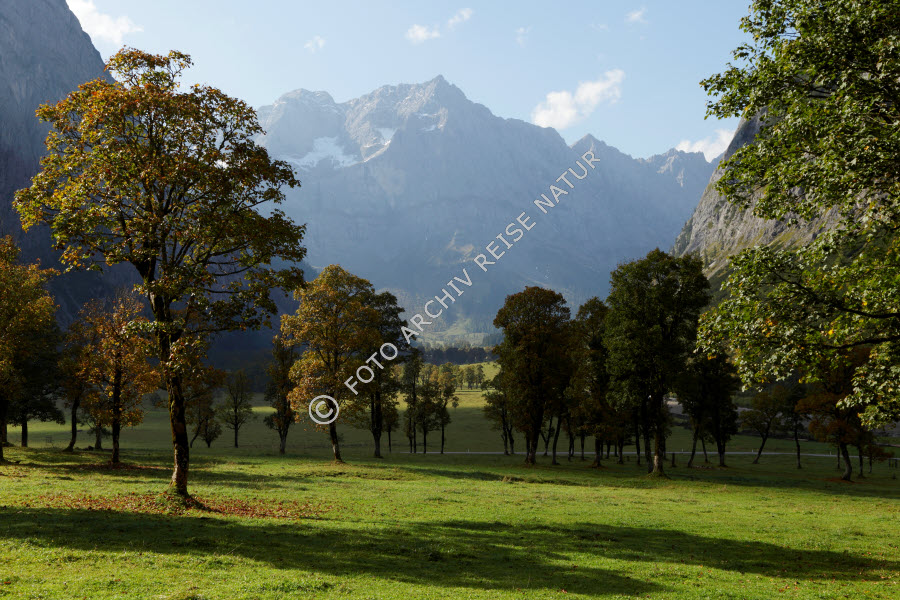 Ahorngewächse, Alm, Baum, Bergahorn, Acer pseudoplatanus, Bergwald, Engalm, Flora, Gebirge, Großer Ahornboden, Hinterriss, Hochtal, Karwendel, Kulturlandschaft, Landschaft, Tal, Tirol, Vomp, Wald, Weide, Österreich,