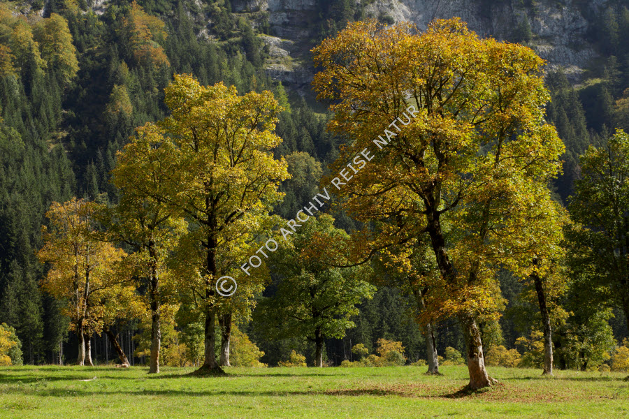 Keywords: Ahorngewächse, Alm, Baum, Baumstamm, Bergahorn, Acer pseudoplatanus, Bergwald, Engalm, Farbe, Flora, Gebirge, Großer Ahornboden, Hinterriss, Hochtal, Karwendel, Krone, Kulturlandschaft, Landschaft, Naturschutzgebiet, Ort, Tal, Tirol, Vomp, Wald, Weide, bunt, gelb, orange, Österreich,