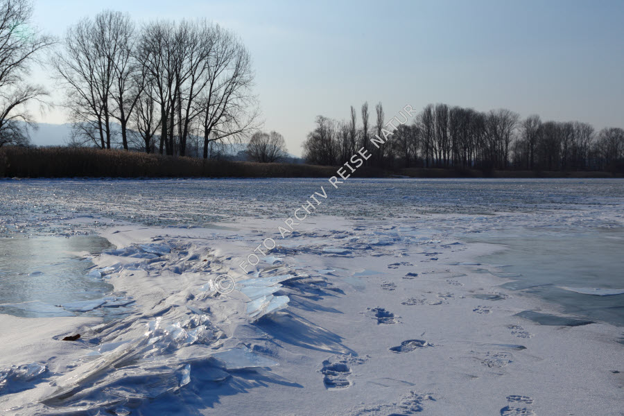 Eisschollen auf dem zugefrorenen Bodensee