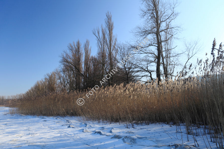 Bodensee-Ufer mit Schilfgürtel im Winter