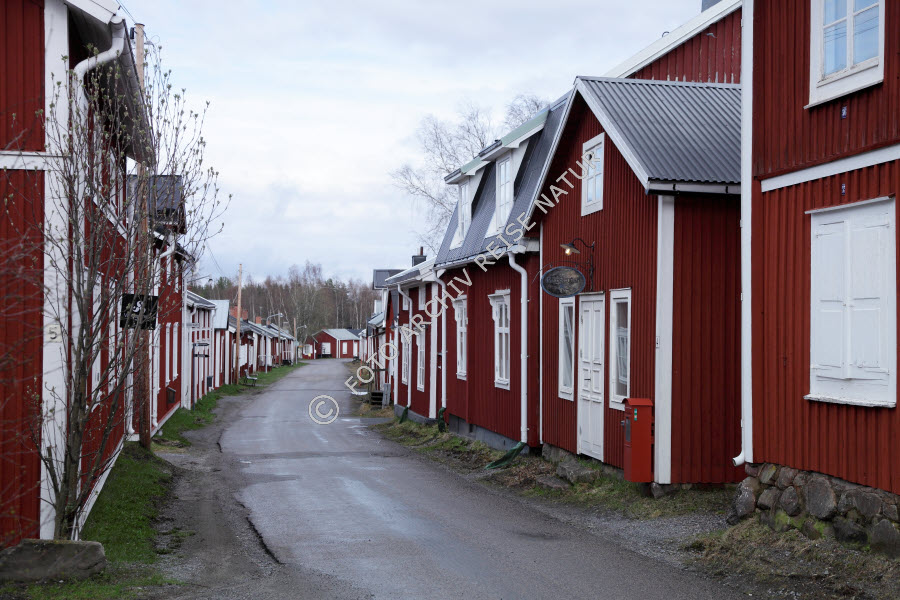 Bauwerk, Dorf, Dorfstraße, Farbe, Gammelstad, Gasse, Gebäude, Haus, Holzhaus, Kirchdorf, Kultur, Kulturlandschaft, Luleå, Norrbottens Län, Schweden, Straße, Verkehrsweg, Weltkuturerbe, historisch, rot, weiß,