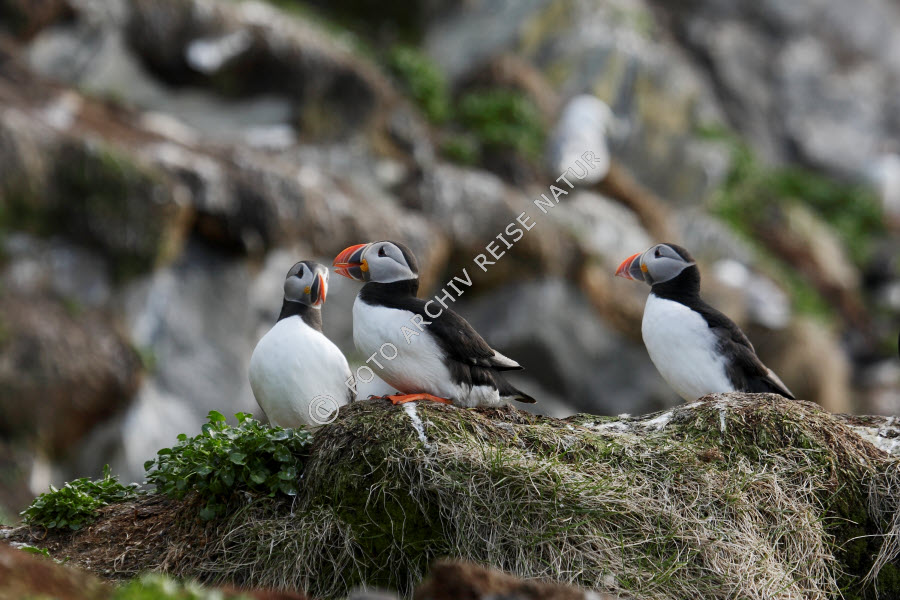 Keywords: Alkenvögel, Barentssee, Fauna, Felsen, Finnmark, Gewässer, Hornøya, Insel, Landschaft, Lappland, Material, Meer, Norwegen, Papageitaucher, Fratercula arctica, Stein, Varanger, Vardø, Vogel, Vogelfelsen, Vogelinsel,