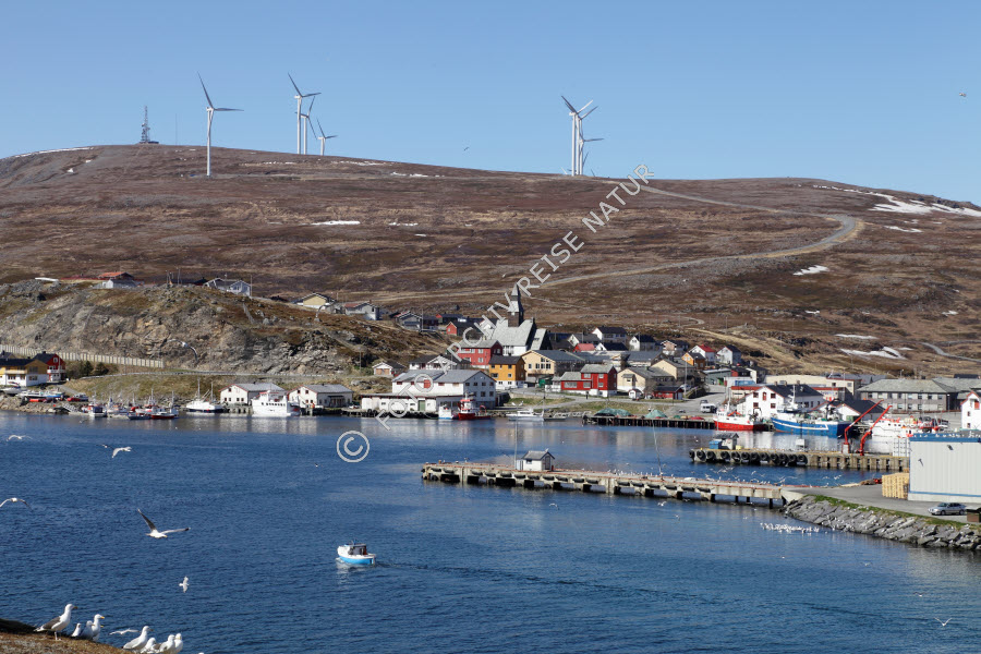Fischerdorf Havøysund mit weltweit nördlichstem Windpark