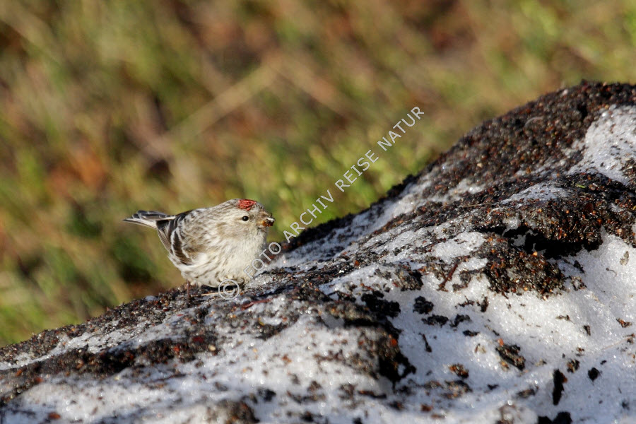 Altschnee, Birkenzeisig, Carduelis flammea, Fauna, Finken, Finnmark, Lappland, Naturschutzgebiet, Niederschlag, Norwegen, Ort, Porsanger, Schnee, Schneefeld, Stabbursnes, Vogel, Wetter, Klima,