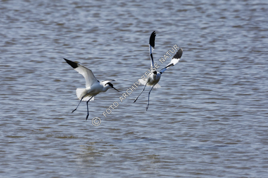 Bodden, Fauna, Flommen Naturreservat, Gewässer, Gruppe, Landschaft, Naturschutzgebiet, Ort, Paar, Säbelschnäbler, Recurvirostra avosetta, Vogel,