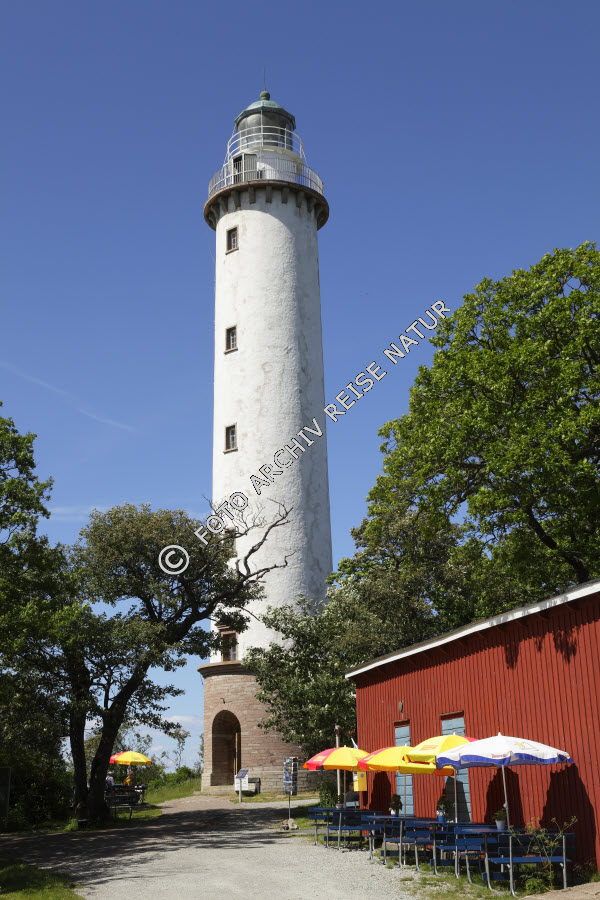 Keywords: Aktivität, Ausflug, Aussichtsplattform, Bauwerk, Byxelkrok, Ereignis, Farbe, Freizeit, Gegenstand, Himmel, Leuchtturm, Norra Udde, Schirm, Schweden, Sonnenschirm, Turm, blau, rot, weiß, Öland,