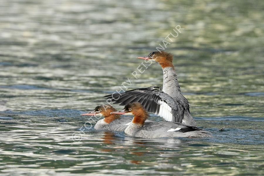 Entenvögel, Fauna, Gewässer, Gruppe, Gänsesäger, Mergus merganser, Lago Maggiore, Landschaft, Schweiz, See, Tenero, Tessin, Trupp, Vogel,