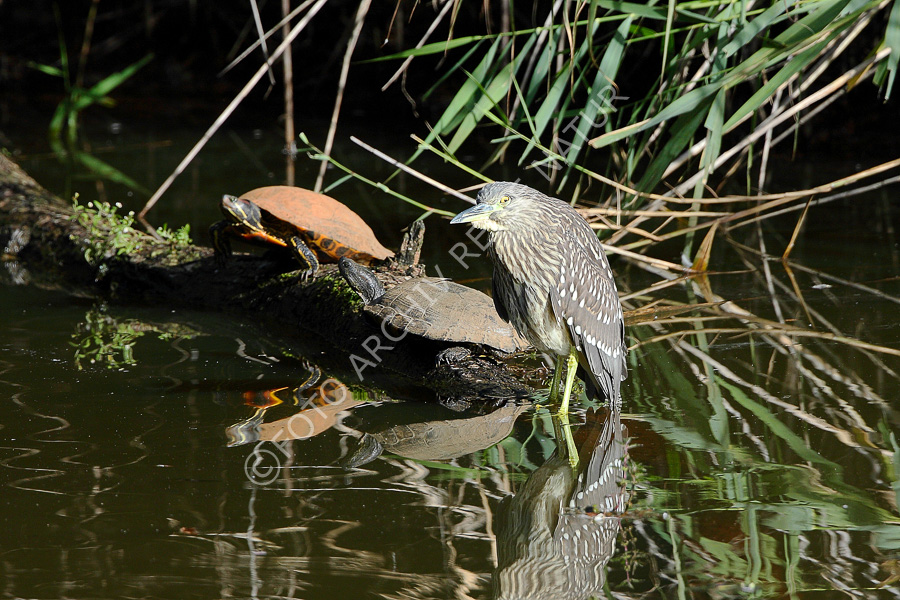 Junger Nachtreiher und Europäische Sumpfschildkröte