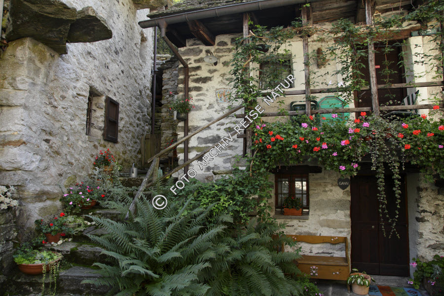 Keywords: Bauwerk, Berghütte, Blume, Blumenschmuck, Brauchtum, Tradition, Farn, Flora, Gebäude, Haus, Hütte, Kultur, Lavertezzo, Natursteinhaus, Rustico, Schweiz, Tessin, Val Verzasca, Zustand, alt, historisch,