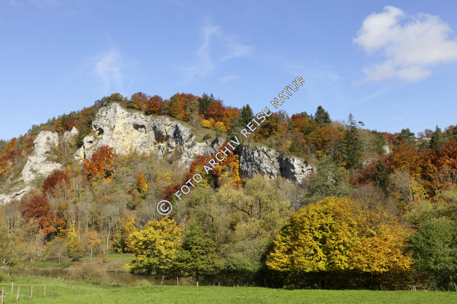 Kalkfelsen im herbstlichen Naturpark Obere Donau