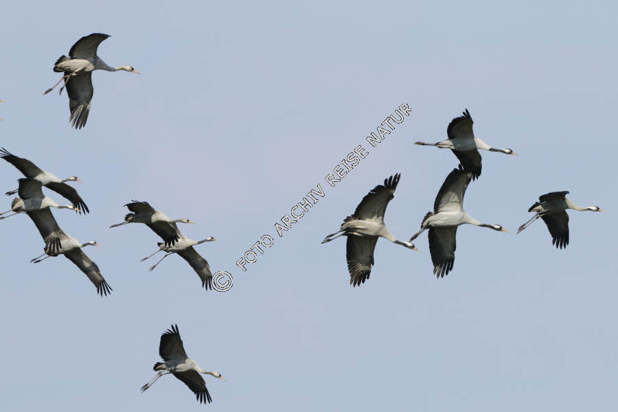 Fliegende Kraniche über dem Hornborgasjön