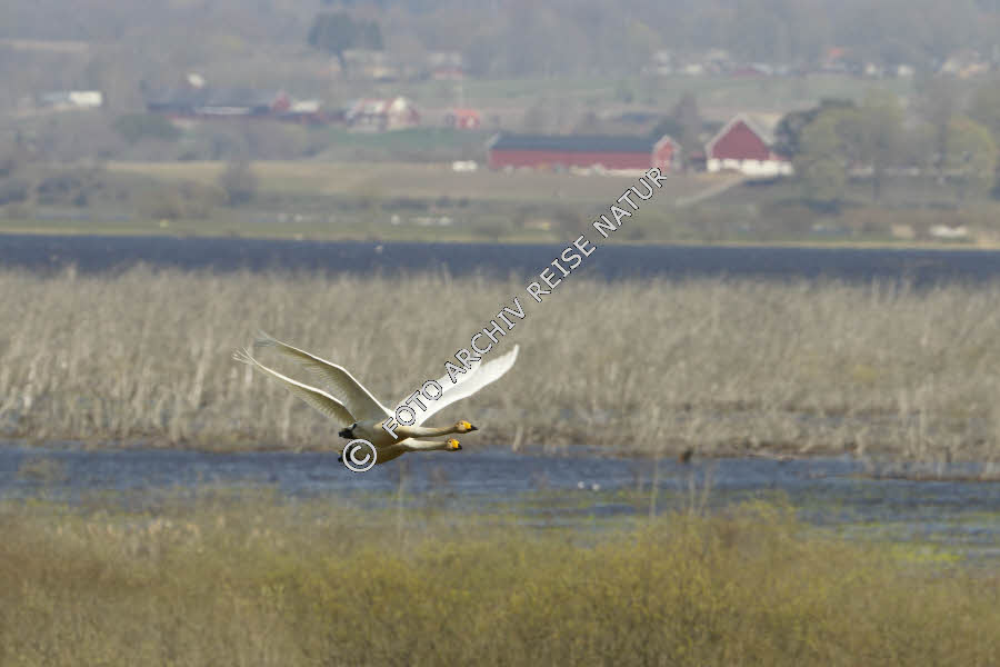 Fliegendes Singschwanpärchen am Hornborgasjön